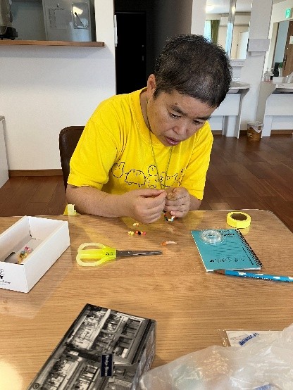 外でのお散歩も夏場は控え、ビーズで作品づくりをしたり、