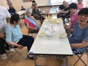 利用者の皆さんとスタッフで皮をむいて。。。