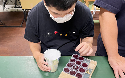 午前中は作業、午後はクラブ活動とメリハリをつけた日課となっています。作業で得た収入は工賃としてお渡しし、働くことへの意欲向上に繋げています。